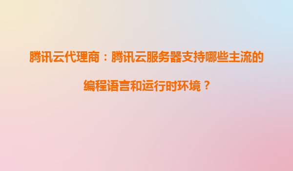 2025-10-31騰訊云代理商視角:騰訊云服務器支持的主流編程語言與運行時環境全解析 一、騰訊云服務器的核心開發環境支持 作為國內領先的云服務提供商,騰訊云服務器(CVM)...