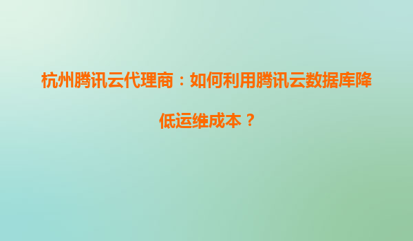 2025-07-31杭州騰訊云代理商:如何利用騰訊云數據庫降低運維成本? 一、騰訊云數據庫的核心優勢 騰訊云數據庫(TencentDB)作為企業級云數據庫服務,提供MySQL、Redis、MongoDB等多種引擎,具備以...