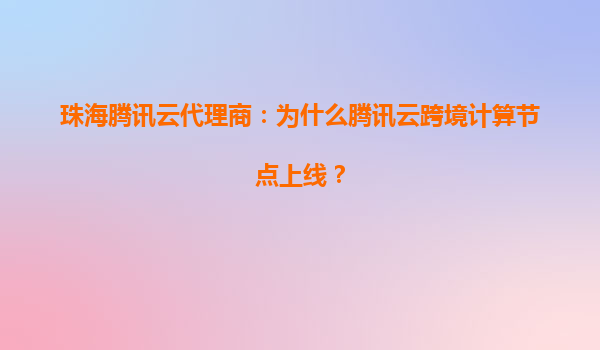 2025-07-19珠海騰訊云代理商:為什么騰訊云跨境計算節點上線? 一、騰訊云跨境計算節點上線的背景與需求 隨著全球數字化進程的加速,企業對云計算的需求不再局限于單一國家或地區。特別是在跨境電商...