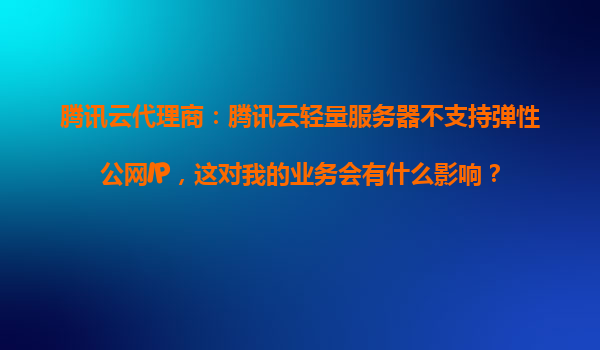 2025-10-28騰訊云代理商視角:騰訊云輕量服務器不支持彈性公網IP的影響與應對策略 一、彈性公網IP的核心價值與缺失影響分析 彈性公網IP(EIP)作為云計算的關鍵能力,主要體現三大核心價值: 業務連續性保障-支...