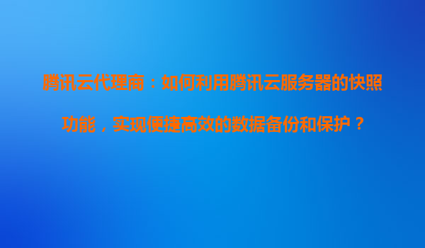 2025-10-28騰訊云代理商:如何利用騰訊云服務器的快照功能,實現便捷高效的數據備份和保護? 一、騰訊云快照功能的優勢 作為國內領先的云服務提供商,騰訊云在數據備份與保護方面提供了強大的快照功能,具備以下核心優勢...