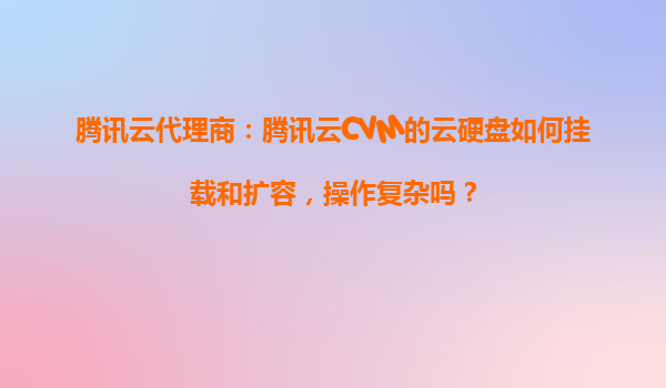 2025-10-28騰訊云代理商:騰訊云CVM的云硬盤如何掛載和擴容,操作復雜嗎? 引言 作為國內領先的云計算服務提供商,騰訊云憑借其穩定、安全、高性能的云服務,贏得了眾多企業用戶的青睞。騰訊云CVM(CloudVirtua...