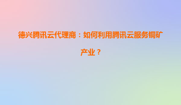 2025-07-04德興騰訊云代理商:如何利用騰訊云服務銅礦產業? 引言 隨著數字化轉型的加速,云計算技術在各行各業的應用越來越廣泛。銅礦產業作為傳統工業的重要組成部分,同樣可以通過騰訊云的先進...