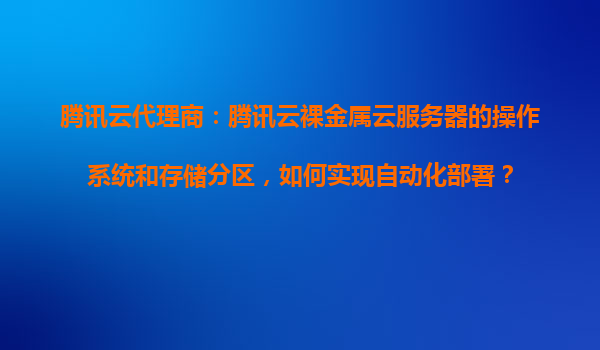 2025-10-25騰訊云代理商:騰訊云裸金屬云服務器的操作系統和存儲分區自動化部署指南 引言 在當今數字化時代,企業對于高效、靈活的云計算基礎設施需求日益增長。作為國內領先的云計算服務提供商,騰訊云憑借其強...