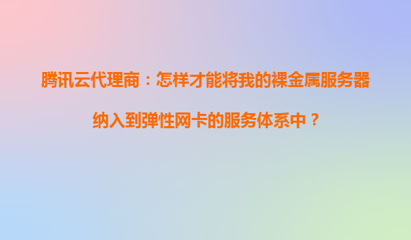 2025-10-26騰訊云代理商:如何將裸金屬服務器納入彈性網卡服務體系 一、裸金屬服務器與彈性網卡的價值結合 裸金屬服務器(BareMetalServer)提供物理機級別的性能隔離和資源獨享,適合高性能計算、金融交...
