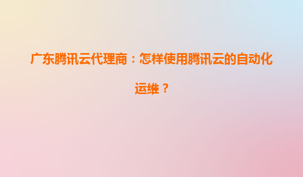 2025-06-25廣東騰訊云代理商:怎樣使用騰訊云的自動化運維? 一、標題深度解析:自動化運維的核心價值 標題包含三個關鍵維度:地域性(廣東)、角色(騰訊云代理商)和技術需求(自動化運維)。這反...