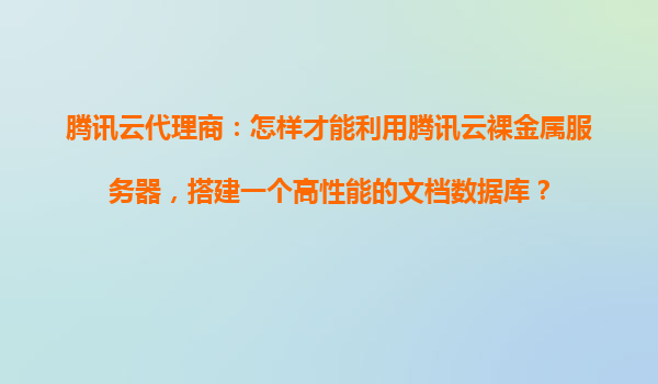 騰訊云代理商指南:利用騰訊云裸金屬服務器搭建高性能文檔數據庫 一、裸金屬服務器與文檔數據庫的優勢 騰訊云裸金屬服務器(BMaaS)提供物理機級別的性能隔離,適合對I/O...