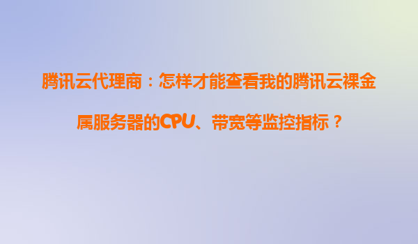 2025-10-24騰訊云代理商:如何查看騰訊云裸金屬服務器的CPU、帶寬等監控指標? 一、騰訊云裸金屬服務器的核心優勢 騰訊云裸金屬服務器(BareMetalServer)結合了物理機的性能與云計算的彈性,適用于高性能計算...