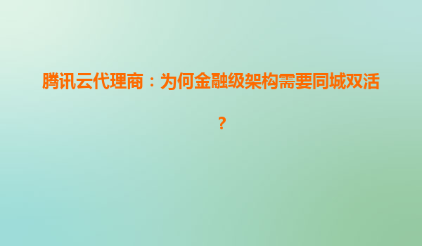 2025-06-11騰訊云代理商視角:為何金融級架構必須部署同城雙活? 金融行業的生死命題:業務連續性 在金融行業,系統宕機1分鐘可能意味著千萬級損失。傳統"主備模式"的災備方案存在致命缺陷:切換時...
