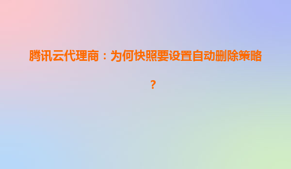 2025-06-08騰訊云代理商:為何快照必須設置自動刪除策略? 快照管理的核心挑戰 在云服務運維中,快照是數據保護的"安全氣囊",但未經管理的快照會像滾雪球般膨脹。騰訊云...