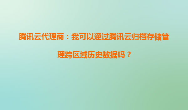 2025-10-05騰訊云歸檔存儲:代理商如何助力企業高效管理跨區域歷史數據? 一、騰訊云歸檔存儲的核心價值 騰訊云歸檔存儲(CloudArchiveStorage,CAS)是專為海量冷數據...