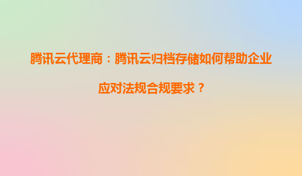 2025-10-04騰訊云代理商:騰訊云歸檔存儲如何幫助企業應對法規合規要求? 一、引言:企業數據合規的挑戰與需求 隨著全球數據保護法規(如GDPR、中國《個人信息保護法》)的完善,企業面臨的數據存儲合規壓力...