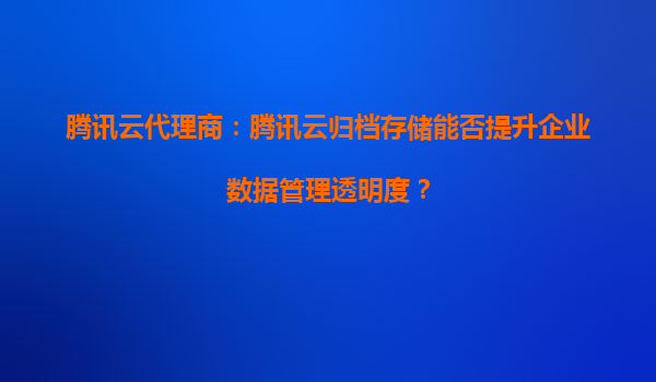 2025-10-03騰訊云代理商:騰訊云歸檔存儲能否提升企業數據管理透明度? 引言 在數字化時代,企業數據量呈爆炸式增長,如何高效、安全地管理這些數據成為企業面臨的重要挑戰。騰訊云歸檔存儲作為一種低成本、高可靠的...