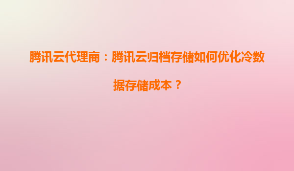 2025-10-03騰訊云代理商:騰訊云歸檔存儲如何優化冷數據存儲成本? 引言 隨著企業數據量的快速增長,冷數據(訪問頻率極低但需長期保存的數據)的存儲成本成為許多企業關注的焦點。騰訊云歸檔存儲(CloudArchiveSto...