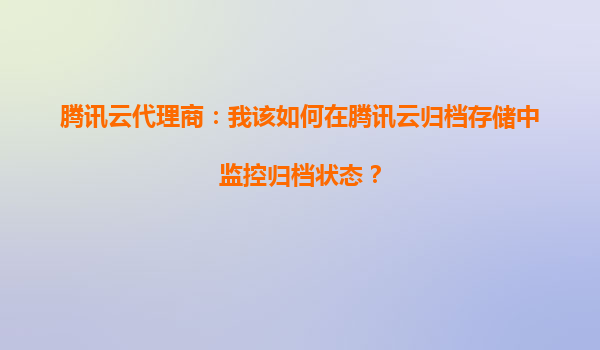 2025-10-02騰訊云代理商指南:如何在騰訊云歸檔存儲中監控歸檔狀態 一、騰訊云歸檔存儲的核心優勢 騰訊云歸檔存儲(CloudArchiveStorage,CAS)是專為海量冷數據設計的低成本、高可靠存儲服務,適用于合規...