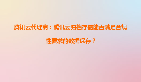 2025-10-01騰訊云代理商:騰訊云歸檔存儲能否滿足合規性要求的數據保存? 一、騰訊云歸檔存儲的核心優勢 騰訊云歸檔存儲(CloudArchiveStorage,CAS)是專為冷數據設計的低成本、高可靠存儲服務,其核心優勢體現在...