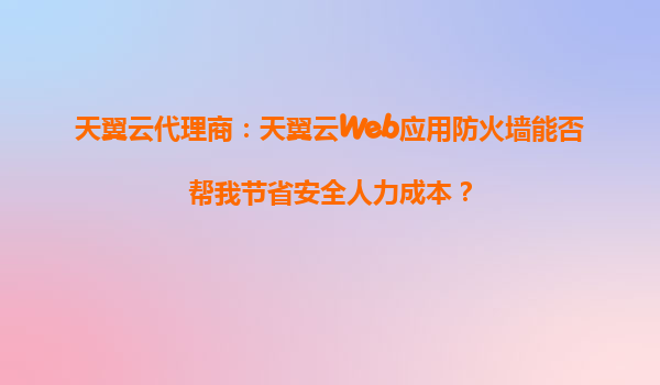 天翼云代理商:天翼云Web應用防火墻如何幫您節省安全人力成本?