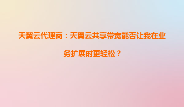 天翼云代理商:天翼云共享帶寬能否讓我在業務擴展時更輕松?