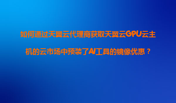 如何通過天翼云代理商獲取天翼云GPU云主機的云市場中預裝了AI工具的鏡像優惠?