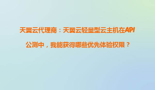 2025-10-31天翼云代理商:天翼云輕量型云主機在API公測中,我能獲得哪些優先體驗權限? 一、天翼云輕量型云主機的核心優勢 天翼云作為中國電信旗下的云服務品牌,始終以安全可靠、高效穩定為核心優勢,輕量型云主機更...