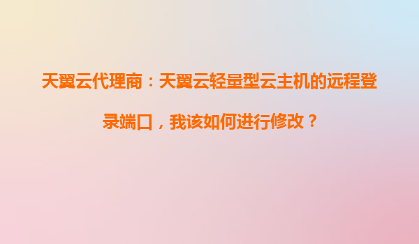2025-10-31天翼云代理商:天翼云輕量型云主機的遠程登錄端口修改指南 為何選擇天翼云輕量型云主機? 天翼云是中國電信旗下的云計算服務品牌,致力于為用戶提供安全、穩定、高效的云服務。天翼云輕量型云主機以...