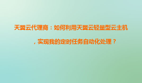 2025-10-31天翼云代理商:如何利用天翼云輕量型云主機實現定時任務自動化處理 一、引言 隨著企業數字化轉型加速,自動化運維需求日益增長。定時任務作為自動化運維的重要組成部分,可有效提升工作效率,減少人力成本。天...