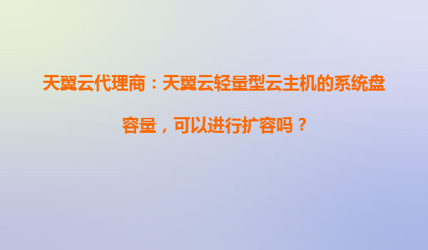 2025-10-31天翼云代理商解析:天翼云輕量型云主機的系統盤容量是否支持擴容? 一、天翼云輕量型云主機簡介 天翼云輕量型云主機是中國電信天翼云推出的面向輕量級應用場景的彈性計算服務,具備高性價比、快速部署和靈活配...