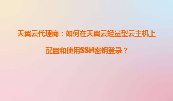 2025-10-31天翼云代理商:如何在天翼云輕量型云主機上配置和使用SSH密鑰登錄 引言 在云計算時代,安全性和效率是企業選擇云服務的重要考量。作為中國電信旗下的云服務品牌,天翼云憑借其高性能、高可靠性和本地化...