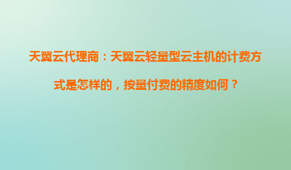 2025-10-31天翼云代理商解析:輕量型云主機計費方式與按量付費精度詳解 一、天翼云輕量型云主機計費模式 天翼云輕量型云主機作為面向中小企業和開發者的普惠型云計算服務,提供靈活彈性的計費方案...