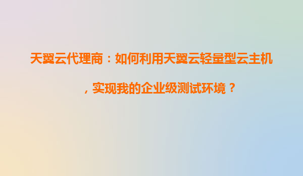 天翼云代理商:如何利用天翼云輕量型云主機實現企業級測試環境 一、引言 隨著云計算技術的快速發展,越來越多的企業開始將測試環境遷移至云端,以提升開發效率和降低成本。作為天翼云代理商,我們有責任幫...