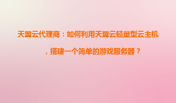 2025-10-31利用天翼云輕量型云主機搭建游戲服務器:代理商的優勢與實踐指南 一、天翼云輕量型云主機的核心優勢 天翼云輕量型云主機(Lighthouse)是為中小企業及開發者量...