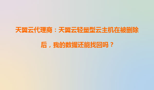 2025-10-31天翼云代理商:天翼云輕量型云主機在被刪除后,我的數據還能找回嗎? 一、天翼云輕量型云主機的數據存儲機制 天翼云輕量型云主機作為一種經濟高效的云計算產品,其數據存儲機制基于分布式存儲系統,默認...