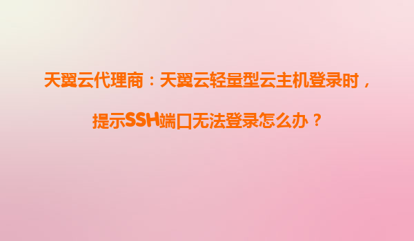 2025-10-29天翼云代理商:天翼云輕量型云主機SSH端口無法登錄問題解決方案 一、問題背景與天翼云輕量型云主機的優勢 作為天翼云代理商,用戶在試用或管理天翼云輕量型云主機時,可能會遇到SSH端口無法登錄的情況...