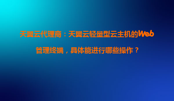 2025-10-29天翼云輕量型云主機Web管理終端:高效管理的核心利器 一、Web管理終端的關鍵功能 作為天翼云代理商,我們深知輕量型云主機的Web管理終端是用戶實現高效運維的核心入口。...