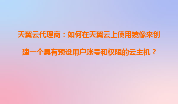 天翼云代理商:如何在天翼云上使用鏡像創建預設賬號的云主機 一、天翼云鏡像與代理商的核心優勢 天翼云作為中國電信旗下云計算品牌,提供安全可靠的云服務基礎設施。通過天翼云代理商部署業務,用戶可...