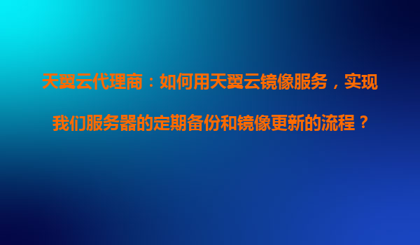 2025-10-26天翼云代理商:如何用天翼云鏡像服務實現服務器定期備份與鏡像更新 一、天翼云鏡像服務的核心優勢 作為中國電信旗下云計算服務商,天翼云鏡像服務具備以下優勢: 高可靠性:基于分布...