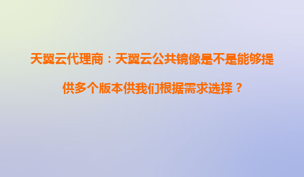2025-10-27天翼云代理商:天翼云公共鏡像是否支持多版本選擇? 一、天翼云公共鏡像的多版本支持 天翼云作為中國電信旗下的云計算服務品牌,其公共鏡像庫確實提供了多個版本的操作系統和軟件環境,以滿足不同用戶...