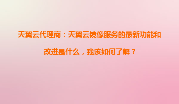 天翼云代理商:天翼云鏡像服務的最新功能和改進解析 一、天翼云鏡像服務的核心優勢 作為中國電信旗下的云服務品牌,天翼云憑借其強大的基礎設施和合規性保障,在鏡像服務...