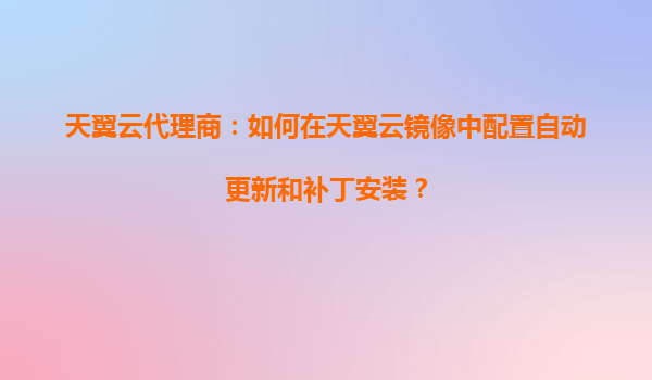 2025-10-22天翼云代理商指南:如何在天翼云鏡像中配置自動更新和補丁安裝 一、天翼云的核心優勢 作為中國電信旗下的云計算服務品牌,天翼云憑借以下優勢成為企業數字化轉型的優選平臺: 安全合規性:通...