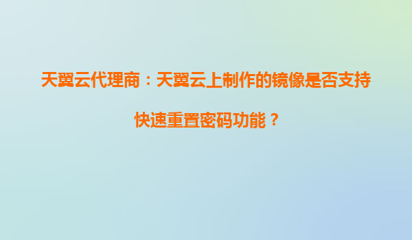 天翼云代理商解析:天翼云鏡像是否支持快速重置密碼功能? 一、天翼云鏡像的快速重置密碼功能 在云計算使用過程中,因安全或管理需求,用戶可能需要快速重置云...