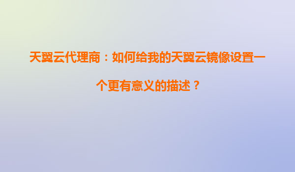 天翼云代理商指南:如何設置更有意義的鏡像描述 引言 在云計算時代,鏡像作為預配置的模板,是快速部署云服務器的重要資源。一個清晰、有意義的鏡像描述能幫助用戶快速理解鏡像用途,提高運維效率。作為天...