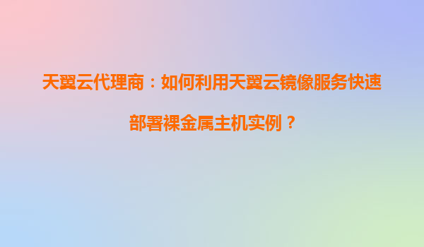 天翼云代理商:如何利用天翼云鏡像服務快速部署裸金屬主機實例 一、天翼云的核心優勢 作為中國電信旗下的云計算服務品牌,天翼云憑借以下核心優勢成為企業上云的首選: ...