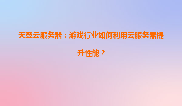 2025-04-05天翼云服務器:游戲行業如何利用云服務器提升性能? 一、游戲行業面臨的性能挑戰 隨著游戲行業的快速發展,玩家對畫面品質、實時交互和全球同服的需求日益增長...