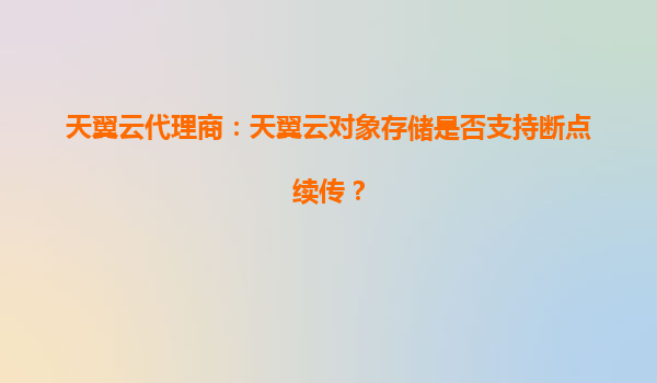 2025-10-14天翼云代理商解析:天翼云對象存儲(OOS)是否支持斷點續傳? 一、什么是斷點續傳?其核心價值解析 斷點續傳是指在大文件傳輸過程中因網絡中斷或主動暫停后,能夠從中斷...