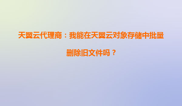 2025-10-14天翼云代理商指南:如何高效批量刪除舊文件 作為天翼云代理商,客戶常問:“能否在天翼云對象存儲中批量刪除舊文件?”答案是肯定的。天翼云對象存儲(OOS)提供強大且靈活的文件管理功能,支持批量操作,...