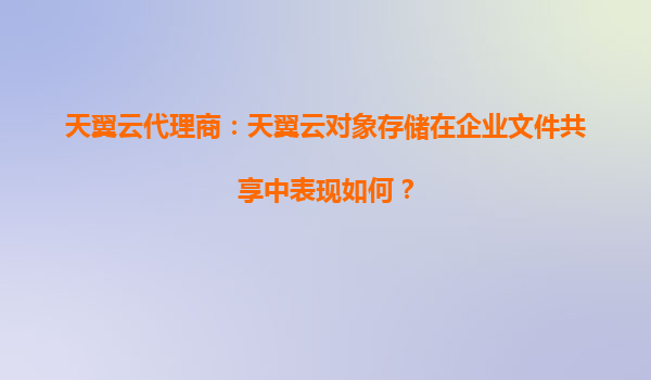 2025-10-11天翼云代理商:天翼云對象存儲在企業文件共享中表現如何? 一、天翼云對象存儲的核心優勢 天翼云對象存儲(OOS)是中國電信旗下天翼云提供的海量、安全、高可靠的云存儲服務,尤其適合企業文件共...