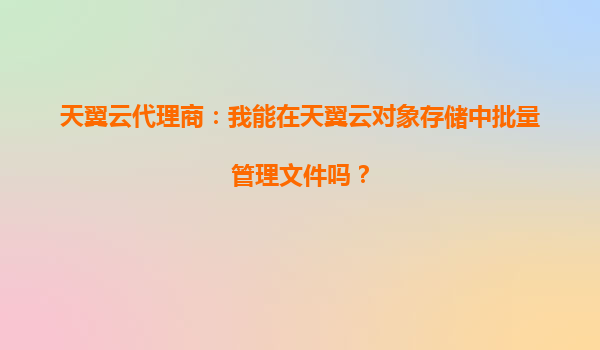2025-10-11天翼云代理商:我能在天翼云對象存儲中批量管理文件嗎? 一、天翼云對象存儲的核心優勢 天翼云對象存儲(OOS)是中國電信旗下提供的海量、安全、高可靠的云存儲服務,適用于企業級數據存儲與管理...