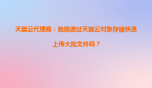2025-10-10天翼云代理商:我能通過天翼云對象存儲快速上傳大批文件嗎? 一、天翼云對象存儲的核心優勢 作為中國電信旗下的云計算服務品牌,天翼云對象存儲(OOS)憑借其高...