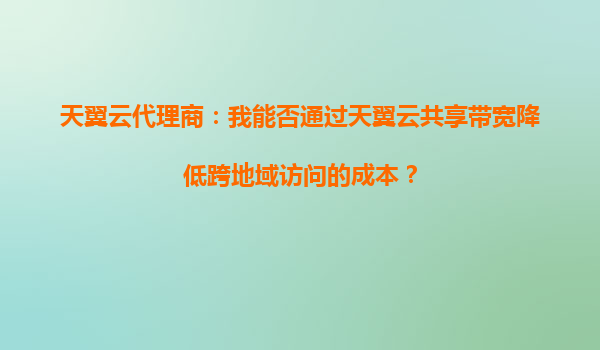 2025-10-03天翼云代理商:我能否通過天翼云共享帶寬降低跨地域訪問的成本? 一、天翼云共享帶寬的核心優勢 天翼云作為中國電信旗下的云計算服務品牌,其共享帶寬服務通過資源池化技術,將多用戶帶寬需求整合到統一物...