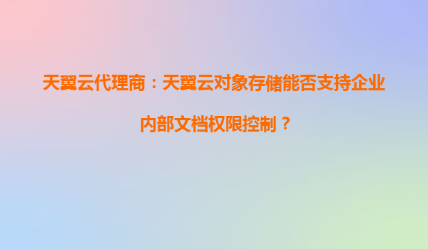 2025-10-03天翼云代理商:天翼云對象存儲能否支持企業內部文檔權限控制? 引言 隨著企業數字化轉型的加速,數據存儲與安全管理成為企業關注的核心問題。天翼云作為中國電信旗下的云計算服務品牌,其對象存儲(OOS)產...